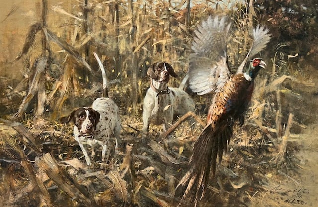 At the Edge of the Cornfield – Pointers & Pheasant